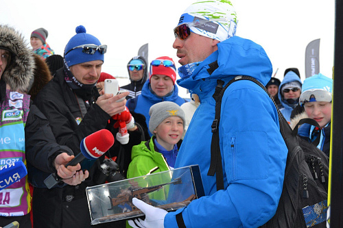 День оказался богат на события и знаменитостей. Двукратный чемпион Параолимпийских игр 2014 года в Сочи по биатлону и лыжным гонкам Владислав Лекомцев на марафоне пришел первым среди параолимпийцев на дистанции 25 км.