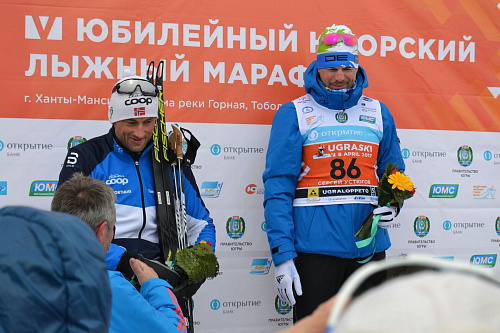 Вторым в Ханты-Мансийске финишировал норвежец Петтер Нортуг, третье место занял швейцарец Кандид Пролон.