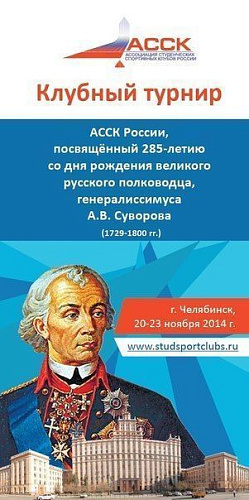 Студенческая спортивная команда ЮГУ «Север» приняла участие в клубном турнире ассоциации студенческих спортивных клубов России (АССК России). Турнир, посвящённый 285-летию со дня рождения великого русского полководца, генералиссимуса Александра Суворова состоялся в Челябинске. В мероприятии приняли участие 24 команды студенческих спортклубов из вузов Приволжского и Уральского федеральных округов, всего 240 студентов.