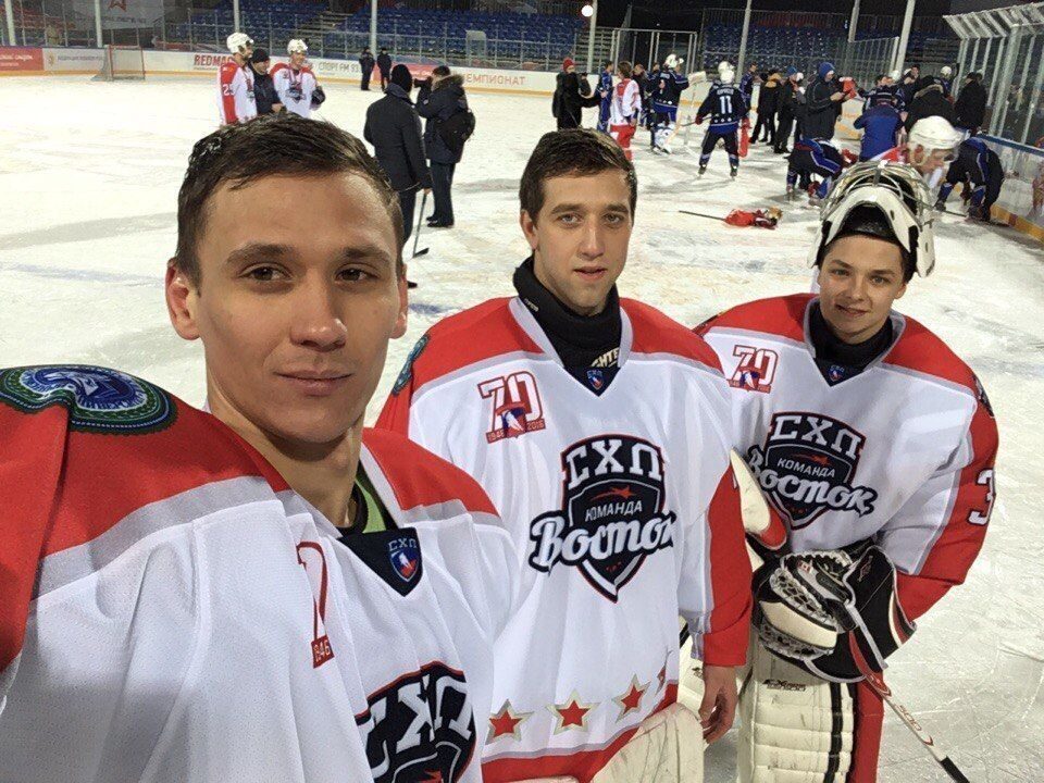 «А у «Востока» замена вратаря – вместо Ильи Беляева, место в воротах занимает Константин Борякин из ЮГУ»;