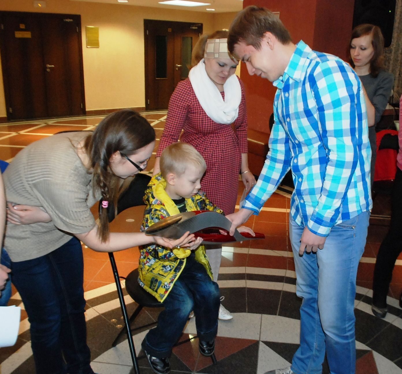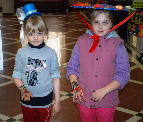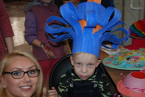 Шляпы, которые в течение двух месяцев делали представители университета пользовались особенной популярностью. Дети не могли с первого раза выбрать какую-то одну из шляп для дефиле – они мерили все. Юным модницам и модникам специалист по боди-арту Екатерина Гафарова делала макияж и наносила на руки флористические рисунки, а Светлана Артемьева специально для мероприятия вырезала штампики узоров обско-угорских народов, которые отпечатывала на руках и щеках детей.