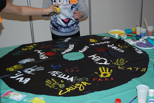 Веселые динозавры из ИМЭКА и Гуманитарного института под аккомпанемент гитары Артема Старикова закружили ребят в хороводе. Творческая студия Юридического института представила модную коллекцию «Вдохновение», вдохновив юных художников на мастер-класс «Я модельер». Студенты и дети собственноручно раскрасили три юбки, отпечатывая свои ладошки, рисуя медведей, цветы и подписывая имена. На каждой юбке осталась надпись «Лучик +ЮГУ», символизирующая нашу дружбу.