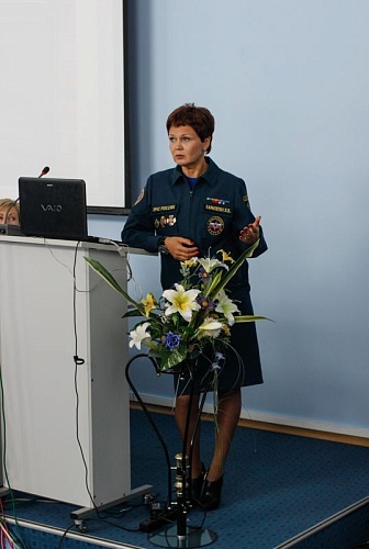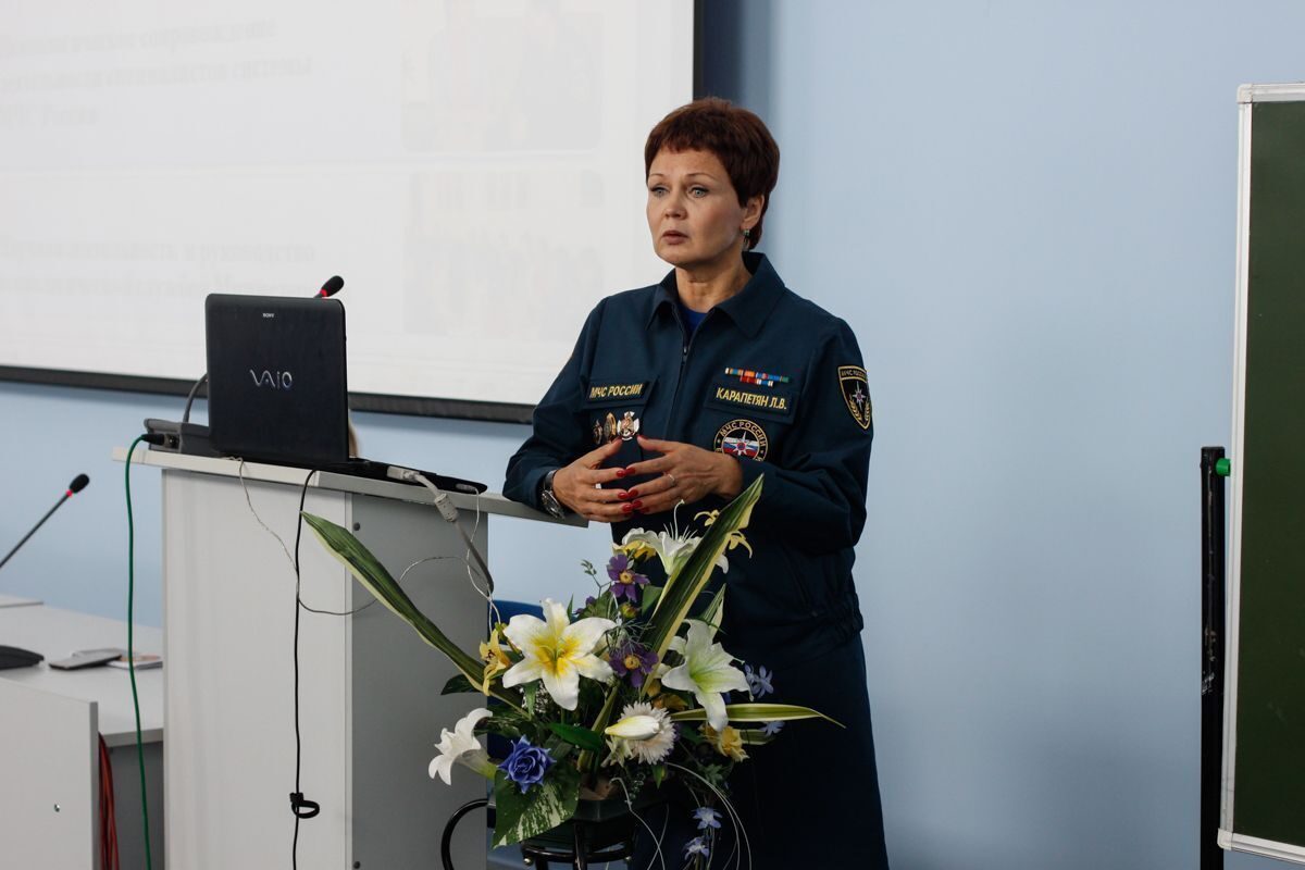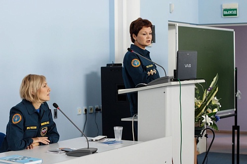 Руководитель филиала поделилась с будущими психологами многолетней практикой работы в чрезвычайных ситуациях, оказанием помощи при ДТП, пожарах и поисковых работах, рассказала о трудностях профессии и национальных особенностях горевания в России.
