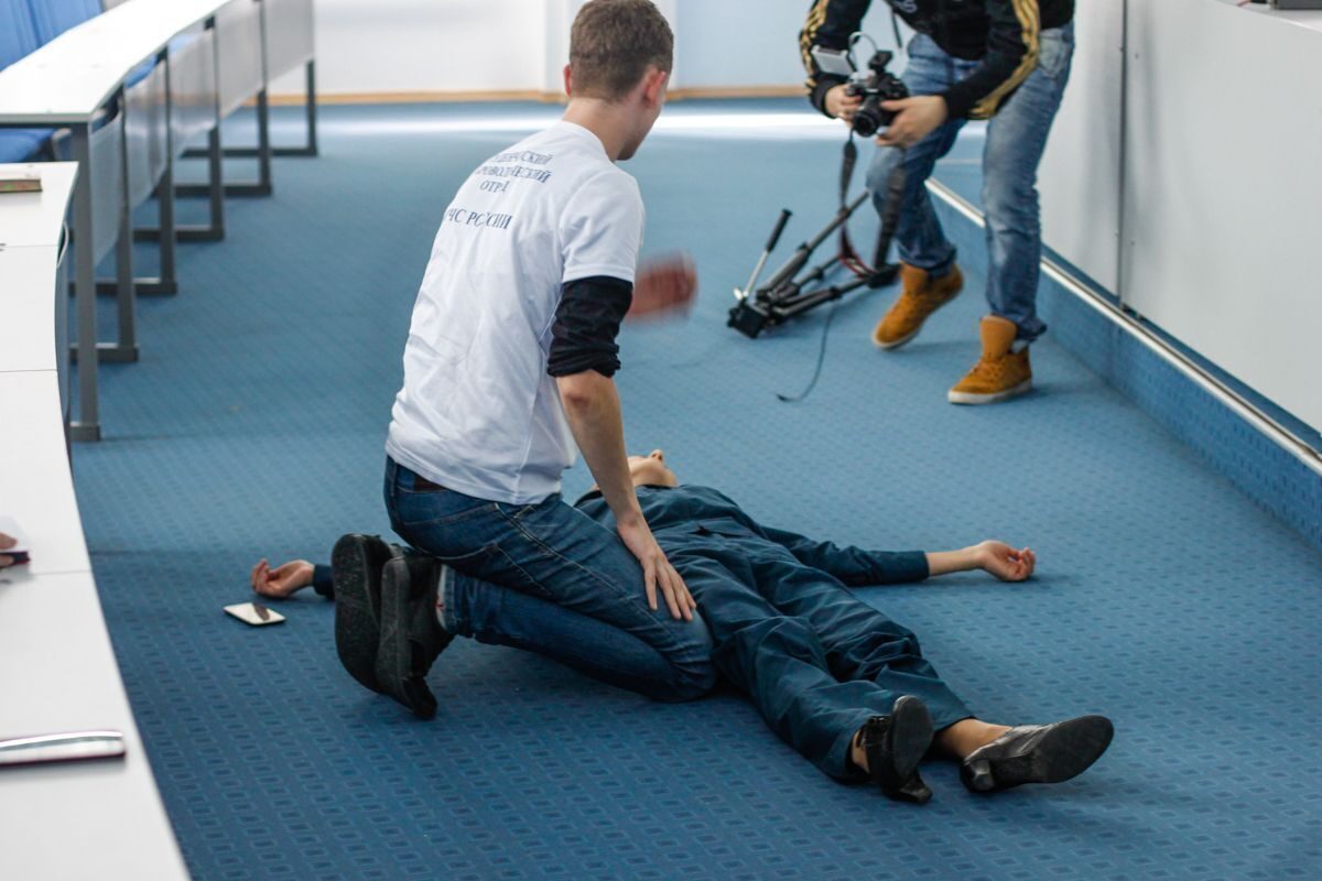 Беседа незаметно переросла в тренинг. Сотрудники Центра смоделировали ситуацию, когда необходимо в полевых условиях срочно оказать помощь пострадавшему при ДТП. Ребята должны были продемонстрировать свои действия в такой ситуации. Конечно, с первого раза не все получилось, но ведь это только начало сотрудничества. Под умелым руководством профессионалов Центра студентам предстоит постичь еще много интересных, а главное необходимых в чрезвычайных ситуациях навыков.