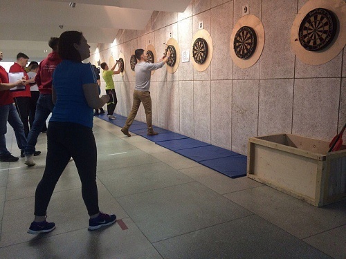 – Не успели делегации университетов расположиться в своих номерах в гостинице «Спорт» и поужинать, как им поступило задание посетить спортивное мероприятие, – рассказывают студенты нашего университета делегаты конкурса «Славим человека труда». – Первым делом для каждой делегации организаторы провели инструктаж по полевой стрельбе, после чего участникам представилась возможность проверить свою меткость в мини-соревнованиях по стрельбе в Дартс. 10 бросков по 3 раза – лишь были разминкой перед главным соревнованием вечера.