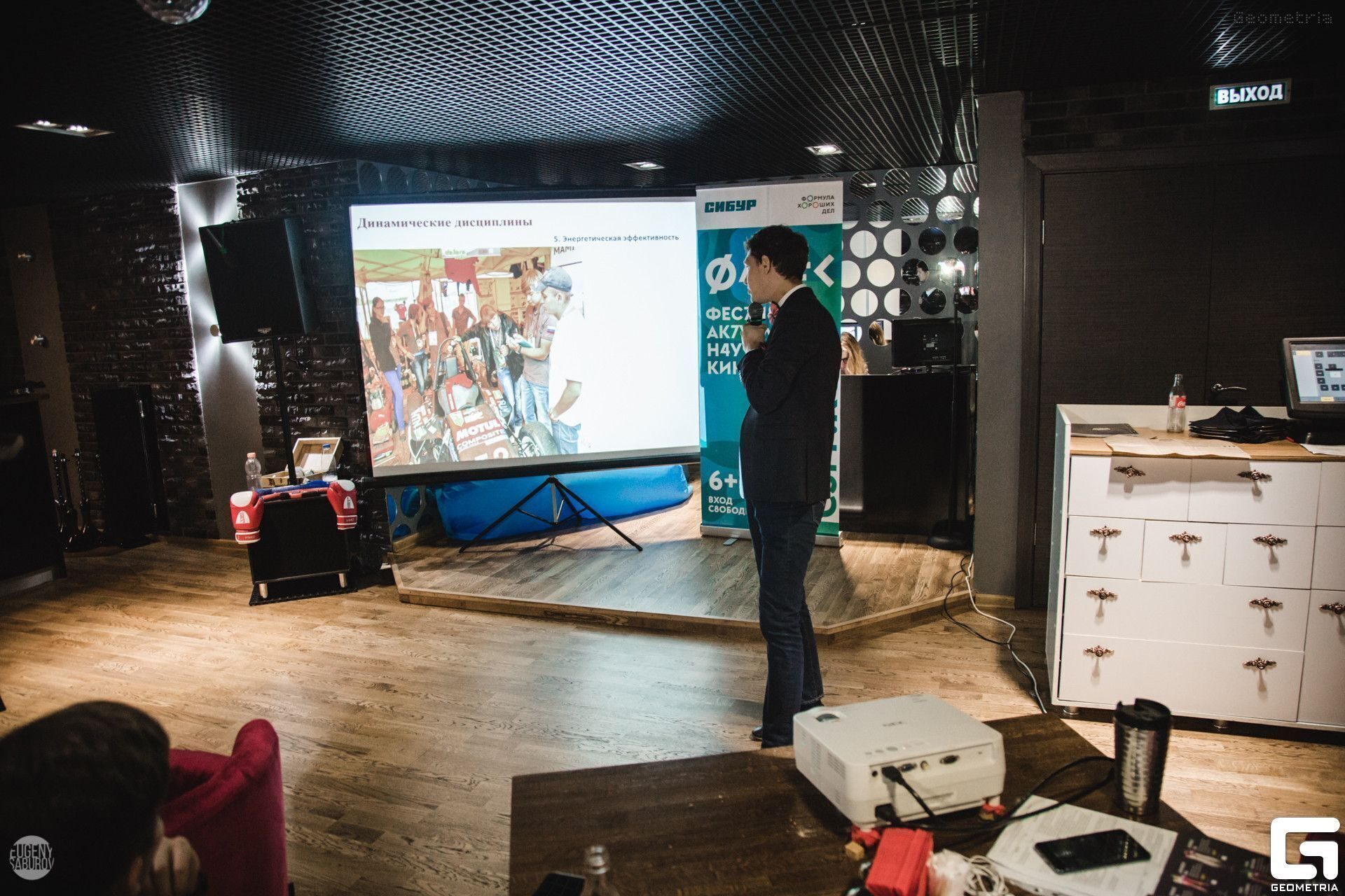 По словам Романа, формат мероприятия был интересный и даже необычный – выступали слэмеры в Караоке-баре «Синдикат». Четыре участника представили свои доклады публике. Тематика касалась использования полимеров в медицине и обыденной жизни, деталей машин, экономного отношения к природному газу и переработки попутного газа.