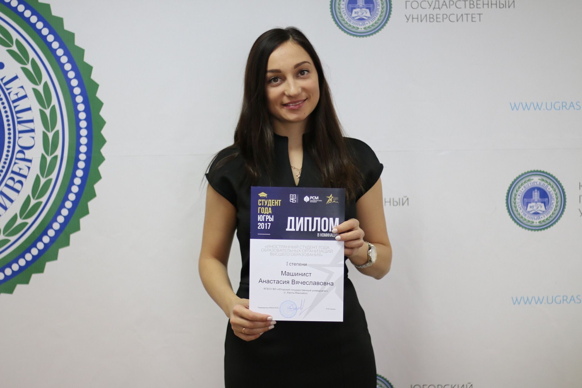 Ханты-Мансийск и Югорский государственный университет представляет лучшая студентка Югры в номинации «Иностранный студент», победительница заочного этапа Всероссийского конкурса, студентка Гуманитарного института Югорского государственного университета Анастасия Машинист.