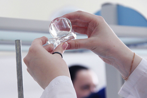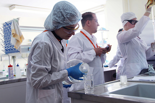 Конкурс состоял из двух частей: теоретической и практической. И у начинающих лаборантов, и у профессионалов теория состояла из тестовых заданий и пяти задач, а практика – из двух экспериментов. Студенты на практике определяли качество воды– её жесткость–комплексонометрическим методом и содержание хрома в воде, используя спектрометр, а опытные лаборанты занимались определением вязкости масла как нефтепродукта и выявлением хлоридионов в воде.