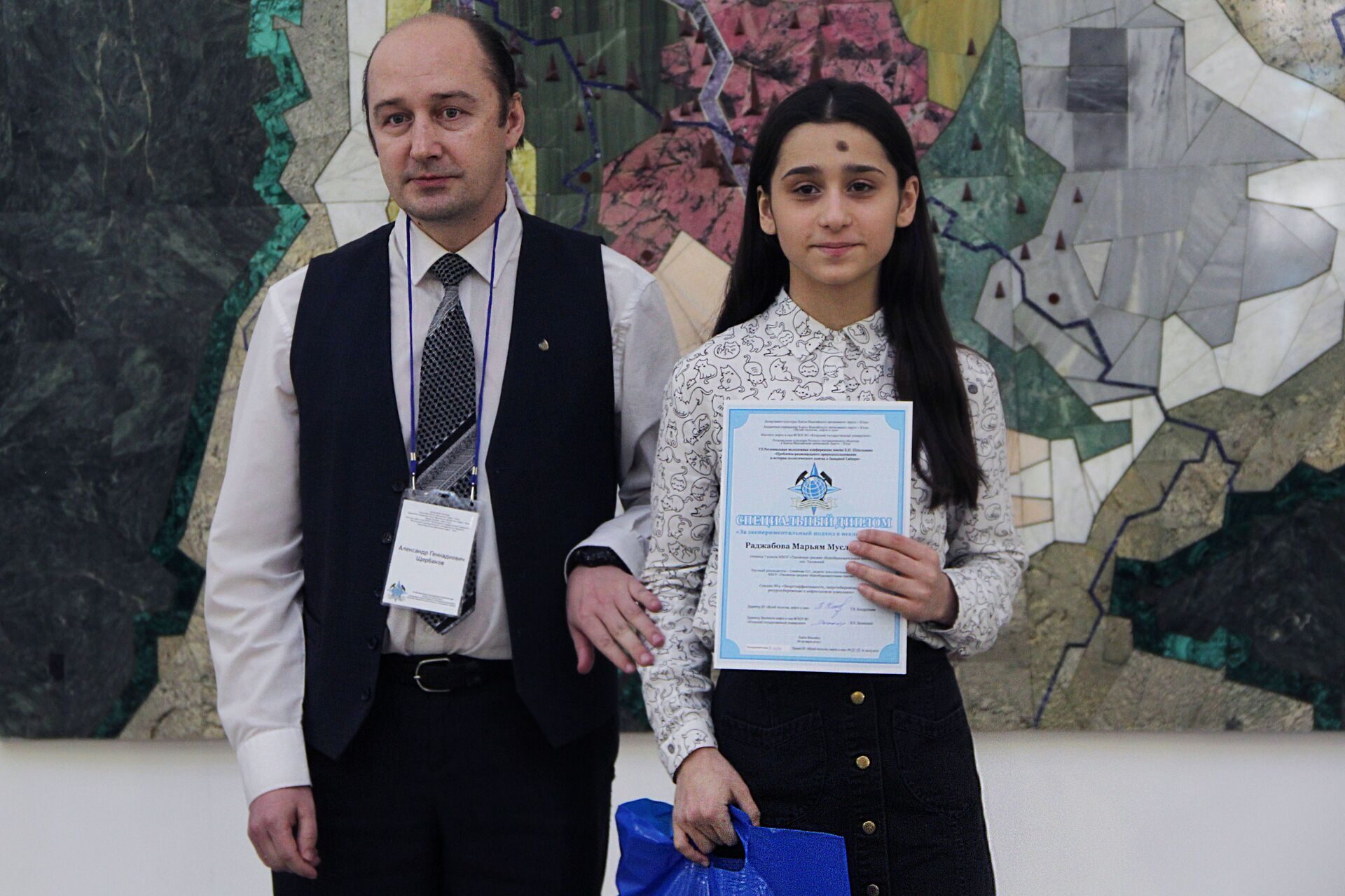 специальным дипломом «За добросовестность и результативность научного исследования» – Дарью Кузьмину, студентку Института нефти и газа Югорского государственного университета;