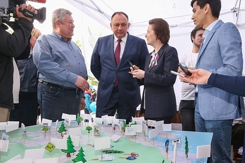 Особый интерес губернатора вызвала площадка регионального сообщества «Городские реновации»: студенты Югорского государственного университета подготовили карту окружной столицы, на которой жители вносили предложения по её благоустройству. Наталья Комарова поддержала идею создания «городского огорода», Максим Ряшин отметил возможное местоположение инклюзивного парка. По словам руководителя сообщества студента ЮГУ Темурджона Мансурова, все предложения горожан будут рассмотрены специалистами Депжкк и энергетики Югры и регионального Центра компетенций по вопросам городской среды, а лучшие будут воплощены на городских площадках.