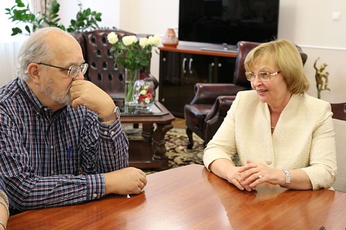 Ректор ЮГУ Татьяна Карминская встретилась с американским этногафом Эндрю Уигет и экспертом бюро ЮНЕСКО Ольгой Балалаевой.