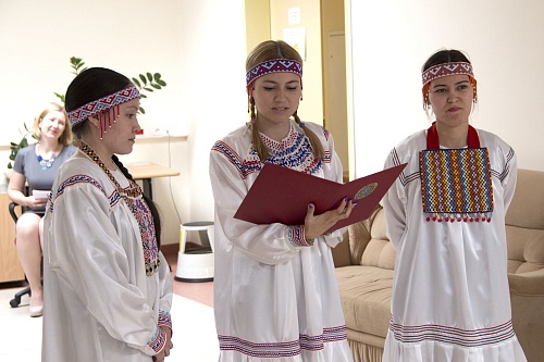 Заведующая кафедрой истории и философии Ткачева Татьяна Владимировна и директор Института народов Севера Дятлова Татьяна Александровна выступили с поздравлениями и пожеланиями плодотворной работы.