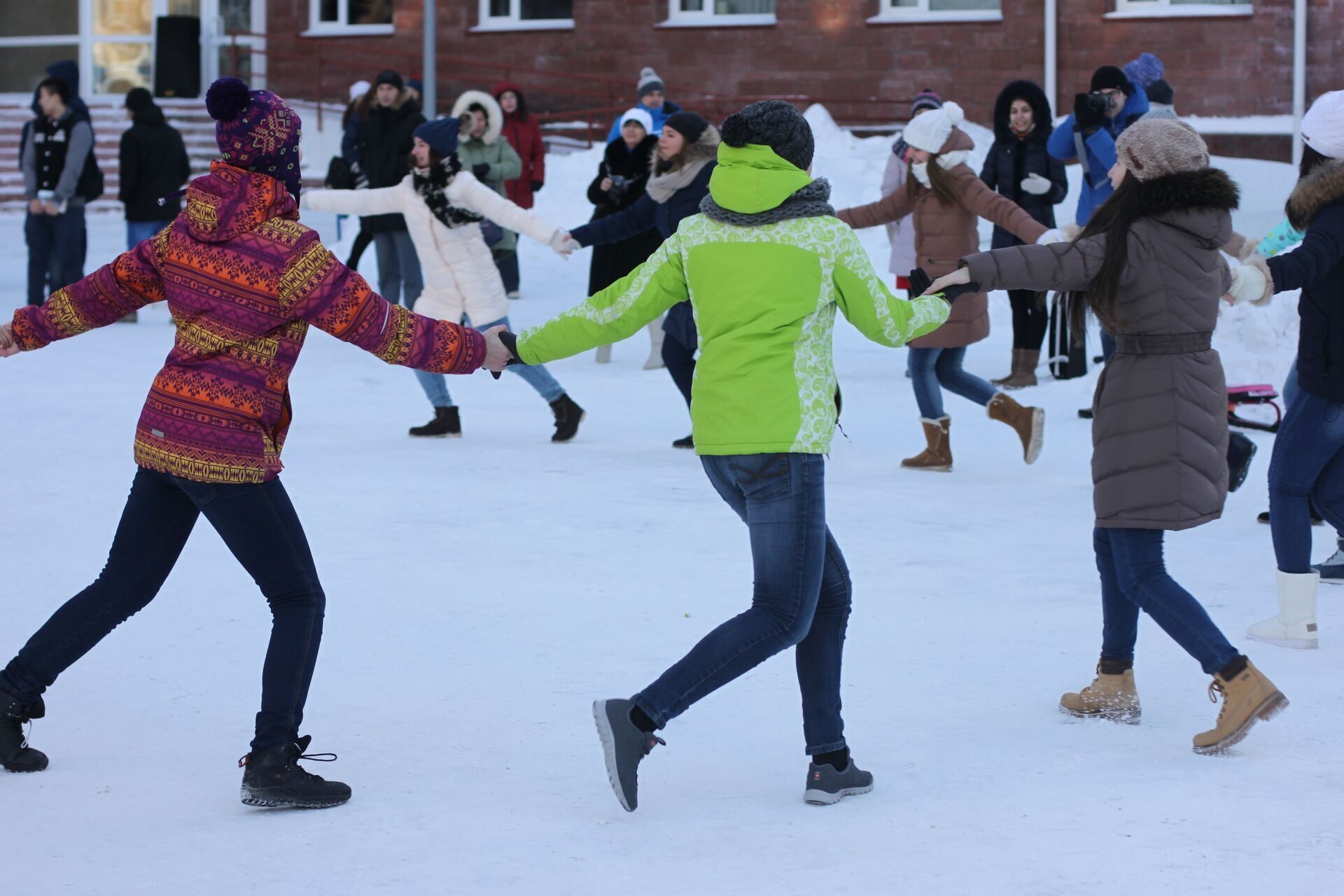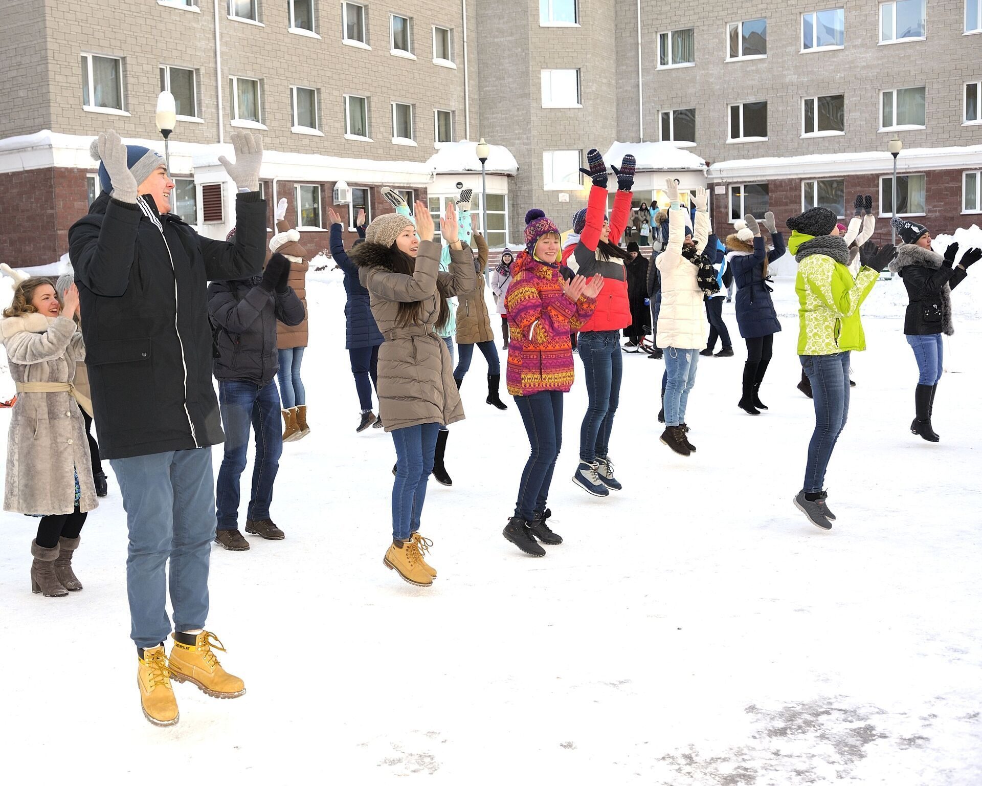 В Татьянин день студентам и преподавателям не пришлось скучать. На большой перемене во внутреннем дворе университета собрались самые веселые ребята, они устроили танцевальный флешмоб, катание на снегоходе и чаепитие, а для директоров институтов традиционные гонки на санях. В часовне Святой Татианы отслужили праздничный молебен.