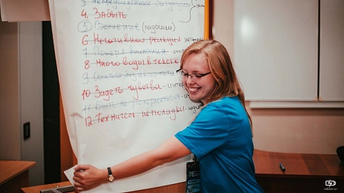 – Первым, что сделали организаторы, разделили нас на три команды: «синие», «желтые» и «зеленые». Внутри каждой группы сложились теплые дружеские отношения. Работа по направлениям научила нас широко мыслить, всегда проявлять креатив и вести активный образ жизни, – рассказывают первокурсники. – Мастер- классы затронули совершенно разные аспекты: мы попробовали себя в театральном мастерстве, в роли организаторов мероприятий и создателей нового спортивного соревнования для университета.