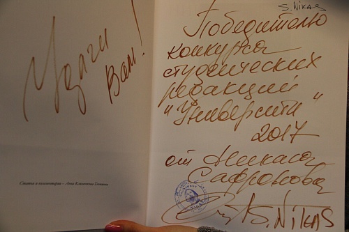 Советский и российский художник, Заслуженный художник РФ Никас Сафронов отметил специальным призом фотопроект «Мы», созданный студентами кафедры жуналистики Михаилом Гасановым и Булатом Сабитовым.