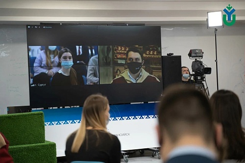В режиме видеоконференции во встрече также приняли участие студенты из Сургута, Нижневартовска и Ханты-Мансийска. Модерировал встречу председатель окружного Российского союза молодежи выпускник ЮГУ Роман Швейкин.