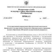 В соответствии с приказом Федеральной службы по надзору в сфере образования и науки от 15.06.2017г. № 1004 Югорский государственный университет признан прошедшим государственную аккредитацию образовательной деятельности по уровням профессионального образования, укрупненным группам профессий, специальностей и направлений подготовки сроком на 6 лет.
