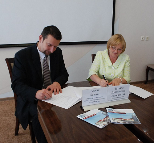 Сегодня ректор ЮГУ Татьяна Карминская и директор Культурного, научного и информационного центра Венгрии в Москве Андраш Барани подписали соглашение о сотрудничестве.