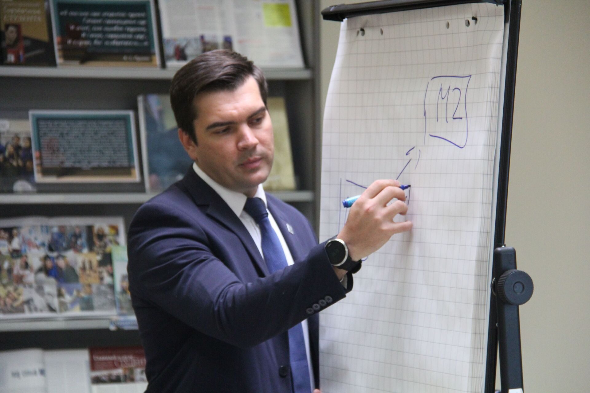 Спикером сессии выступает Вениамин Кизеев – член правления Ассоциации управления проектами «СОВНЕТ», эксперт по управлению проектами и инновациями компании «WIN бизнес решения». За «партами» – руководство и управленческий аппарат Югорского госуниверситета. Эксперт и ученые обсуждают мировые тенденции современного управления, и рассматривают управление проектами как инструмент достижения стратегических целей.