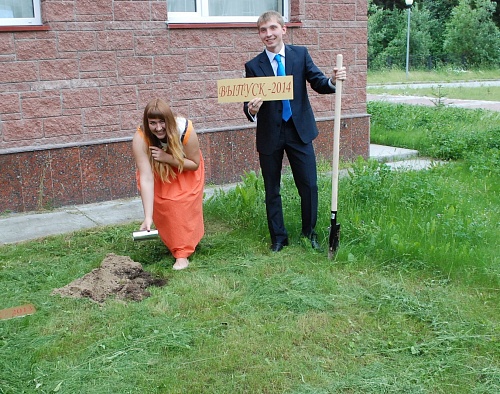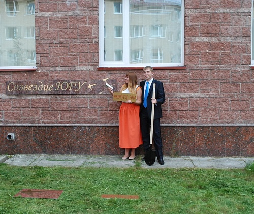 Бывшие студенты ЮГУ, а теперь уже дипломированные специалисты: юрист – Анастасия Манаева и инженер-строитель – Александр Кожедеров заложили в землю «капсулу времени» с видеопожеланиями своим соратникам, которую извлекут через 10 лет. Над капсулой «зажглась» звезда в виде таблички «Выпуск – 2014».
