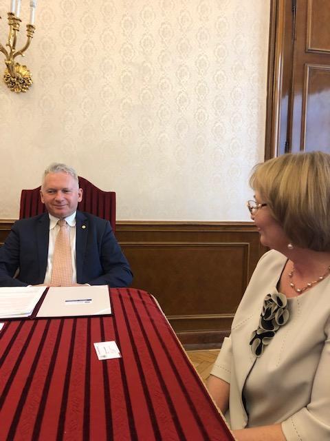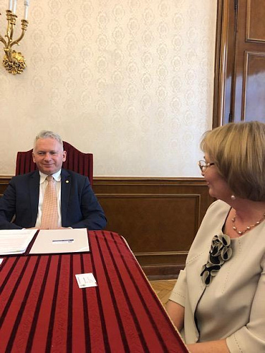 Ректор университета им. Лоранда Этвёша Ласло Борхи и ректор Югорского госуниверситета Татьяна Карминская обсудили вопросы сохранения национальных традиций и языков финно-угорских народов.