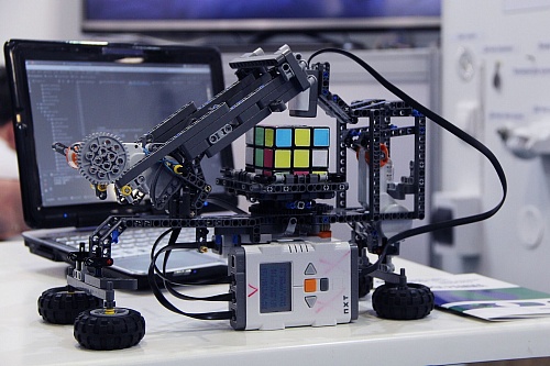 Еще одним экспонатом ЮГУ стал робот, который сканирует и собирает кубик Рубика с помощью всего трех операций.