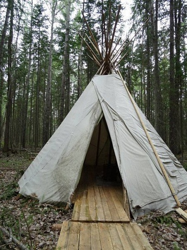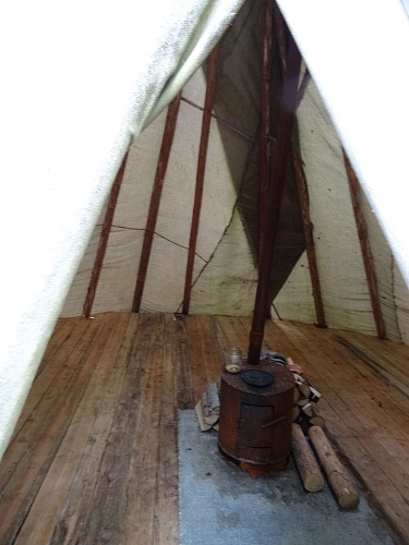 Во второй день семинара участники сделали деревянные столы и скамьи, сшили большой полог (защита от комаров и насекомых), произвели уборку в чуме и на прилегающей территории.