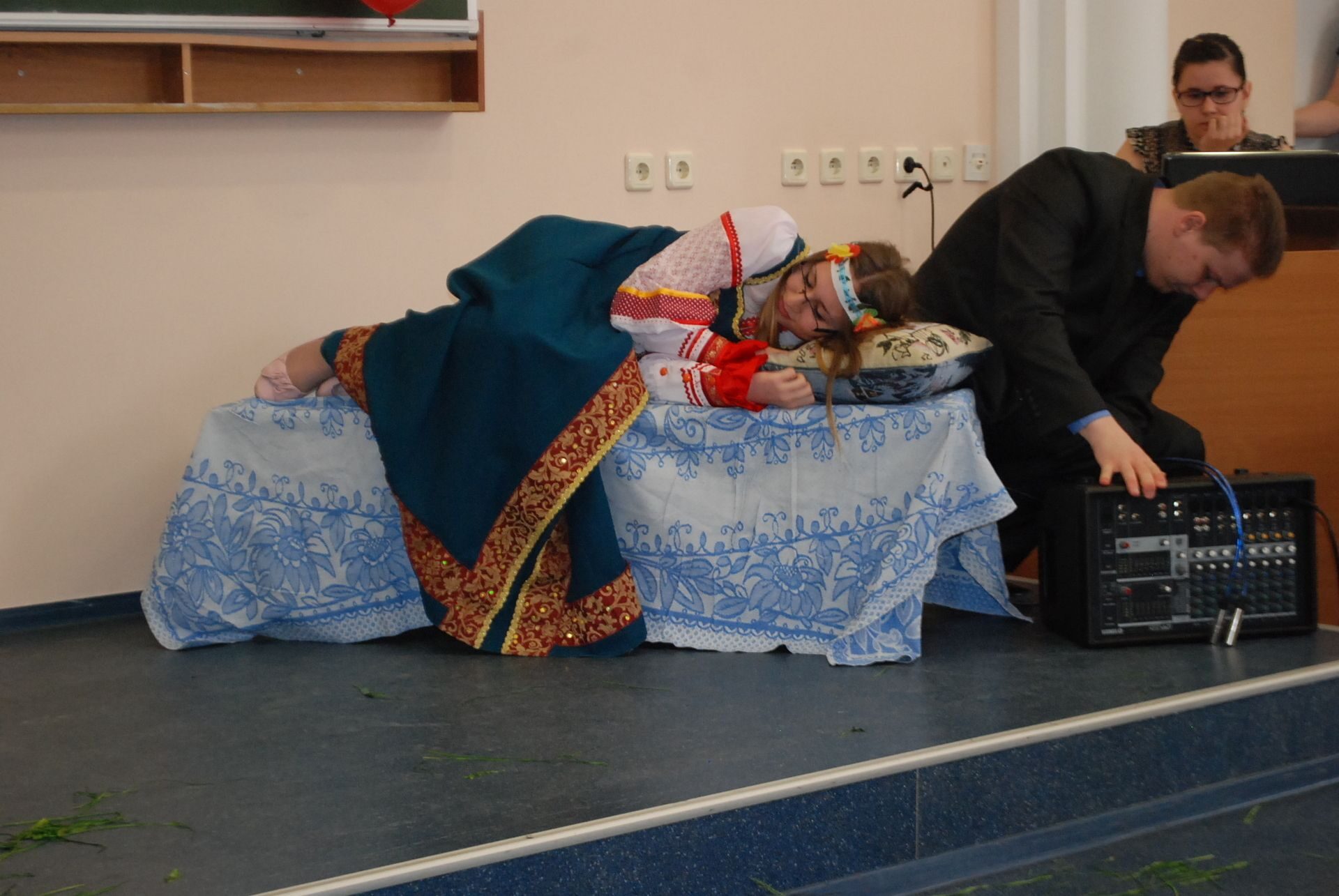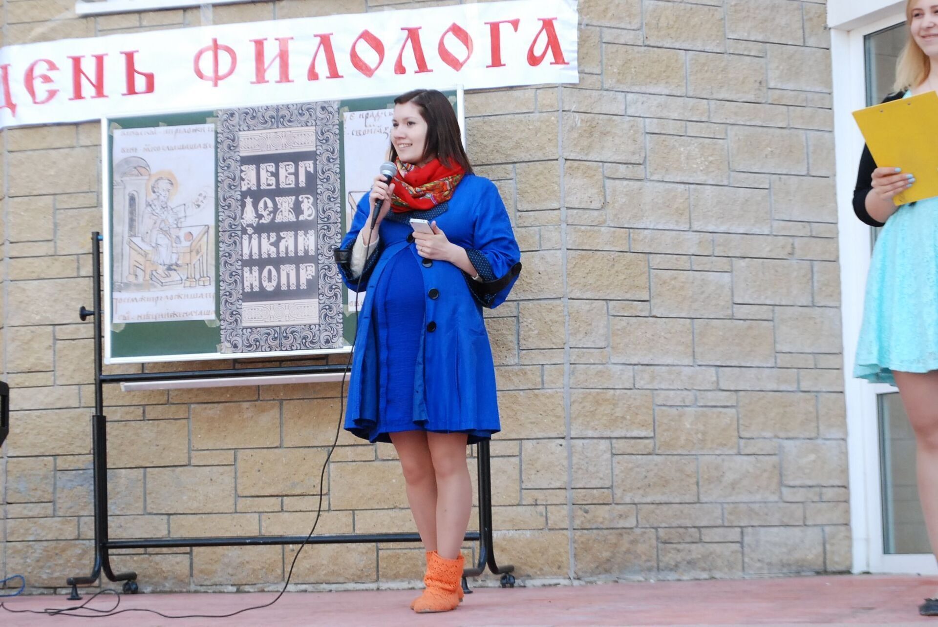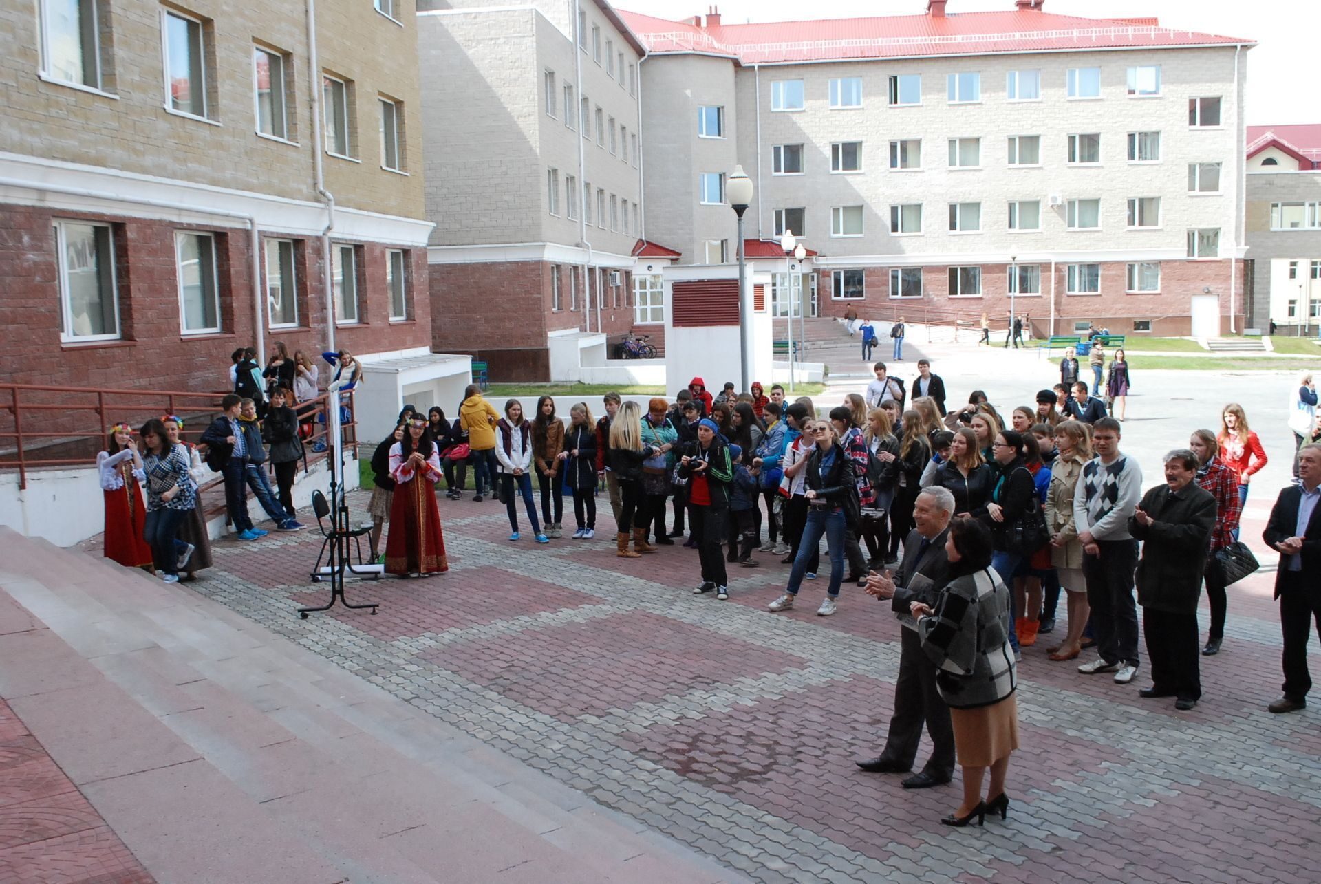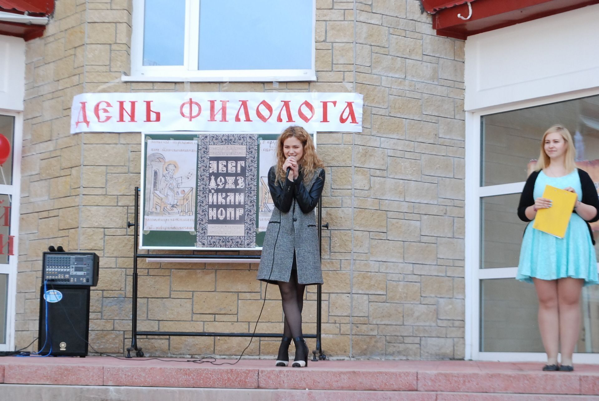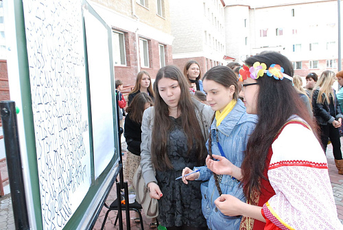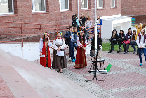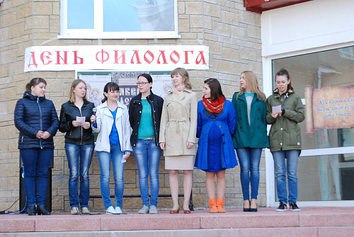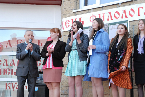 Импровизированной сценой служило крыльцо 4 учебного корпуса. Будущие филологи продемонстрировали владение старославянским, русским, польским, финским, хантыйским и мансийским языками. Профессор кафедры филологии Евгений Игушев вместе со студентами исполнил несколько песен на обско-угорских языках.