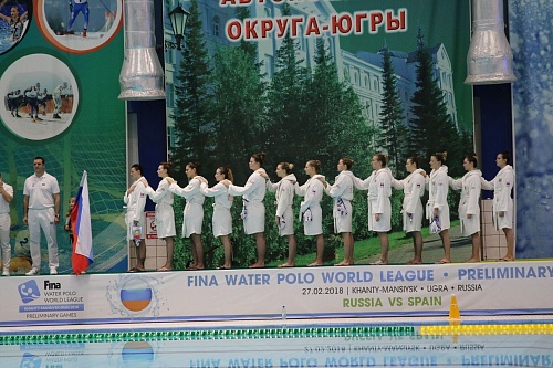 27 февраля женские команды России и Испании встретились в воде бассейна Югорского госуниверситета.