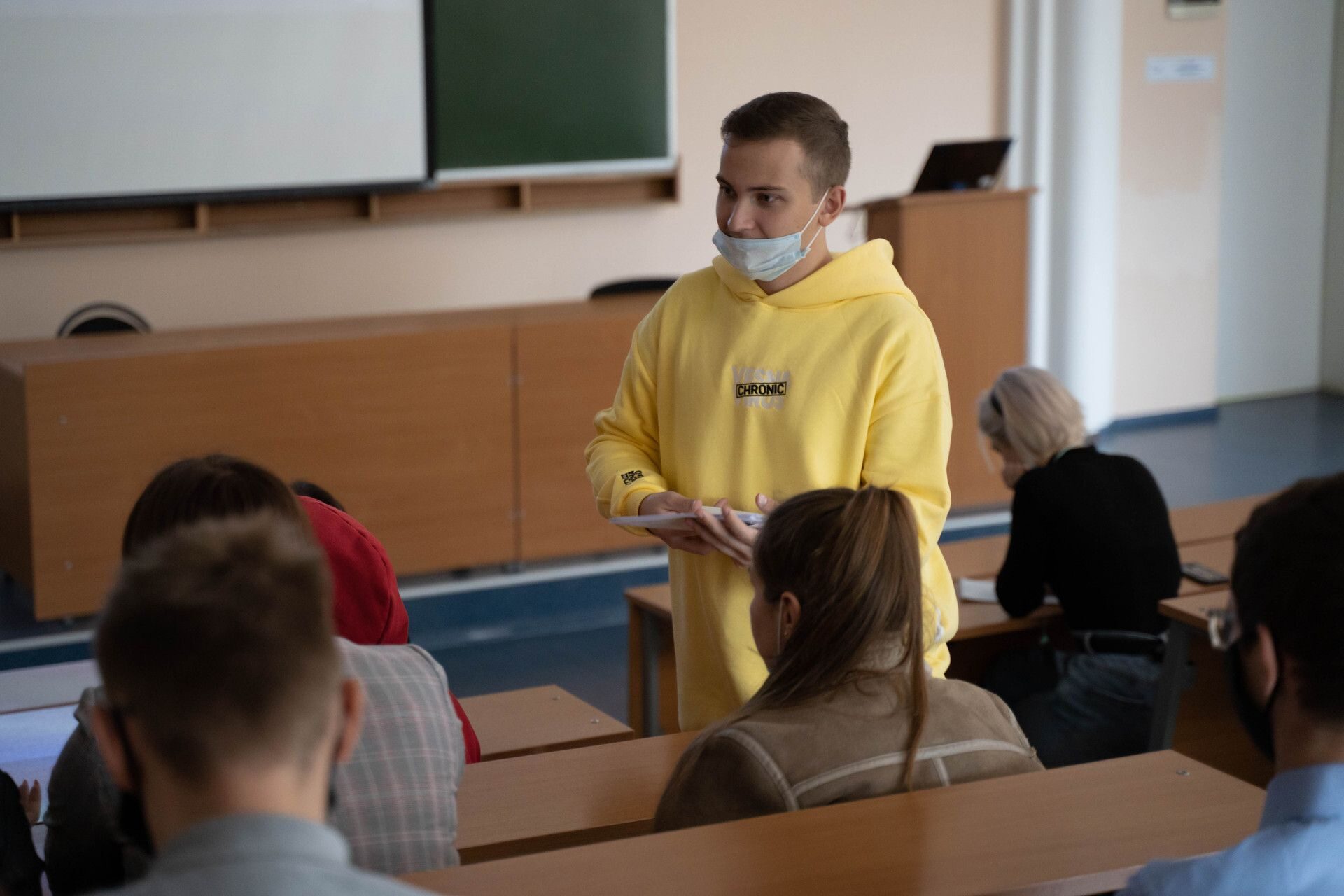В связи с эпидемиологической обстановкой ознакомительная неделя для первокурсников проходит в новом для нашего вуза формате. Новоиспеченные студенты, как положено, приходят в университет, только про студенческую жизнь они узнают из лекций, проводимых дистанционно, а не ходят с экскурсией по корпусам.