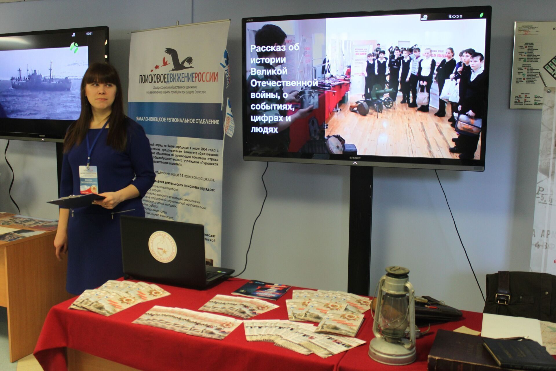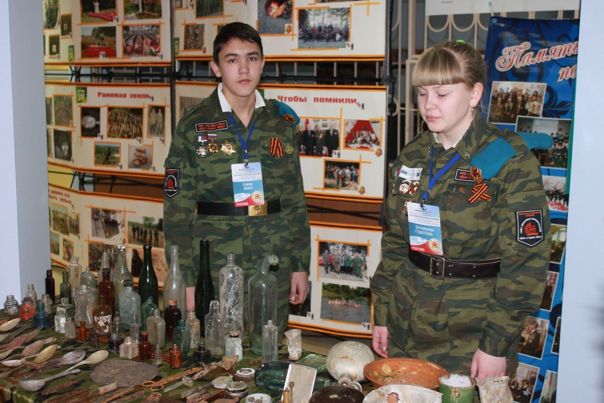 – В Югре действует 20 поисковых отрядов. Среди экспонатов привезенных ребятами в Ханты-Мансийск есть поистине уникальные. Например, гармошка, переданная ветераном Великой отечественной войны в школьный поисковый музей, прошла с ним всю войну до самого Берлина. Трижды спасенное знамя, которое теперь является символом нашего поискового движения со следами крови и дырами от пуль. Боевое снаряжение, оружие и личные вещи бойцов Советской Армии, – сказала она.
