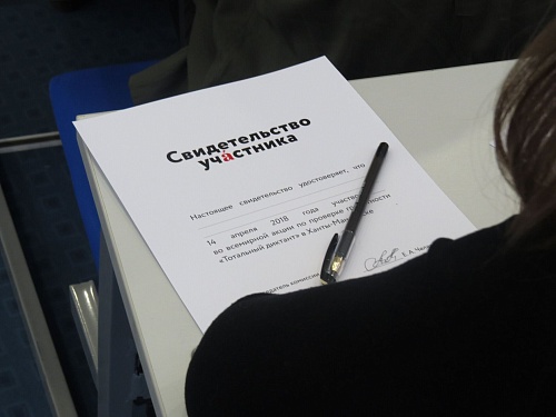 Текст для Тотального диктанта – 2018 написала Гузель Яхина, автор романа «Зулейха открывает глаза». Текст назывался «Учитель словесности» и традиционно состоял из трёх частей: «Утро», «День» и «Вечер». Хантымансийцы и гости столицы Югры писали вторую часть – «День». Диктатором на площадке ЮГУ стала доцент кафедры русского языка и литературы Юлия Исламова.