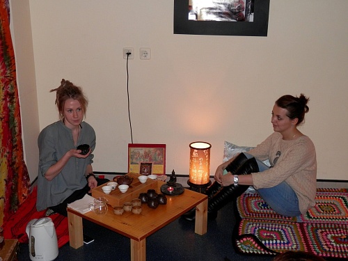 На несколько часов обычная учебная аудитория превратилась в настоящее арт-пространство, воссоздавшее атмосферу Востока. Гости вечера могли познакомиться с фотоработами Кирилла Меркурьева, сделанными во время путешествия по Индии и Непалу, принять участие в чайной церемонии и расслабиться под чарующие восточные мелодии.