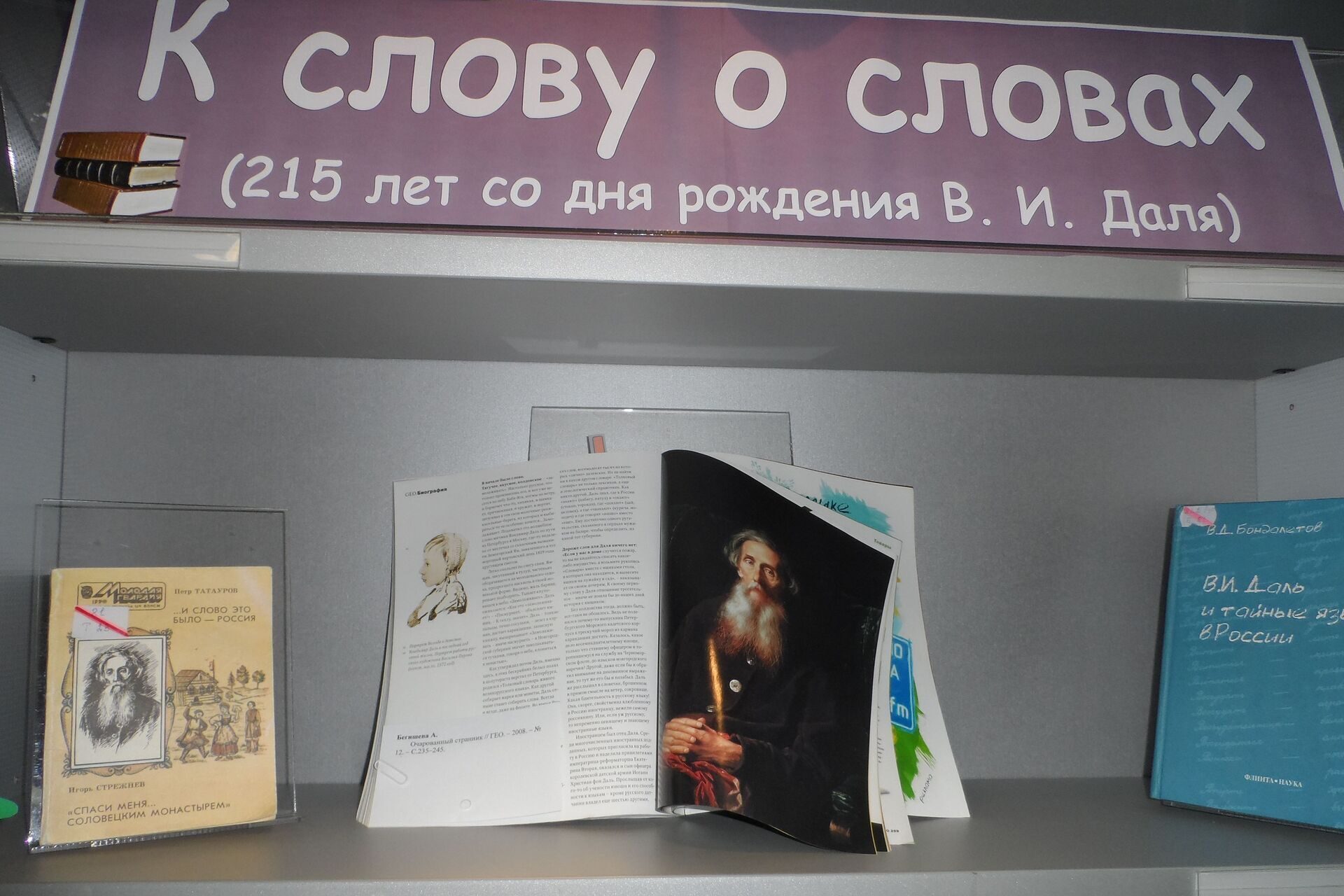 Обязательно посетите выставку «К слову о словах» приуроченную 215-летию со дня рождения В.И. Даля. Владимир Иванович Даль – писатель, врач, лексикограф, создатель «Толкового словаря живого великорусского языка».