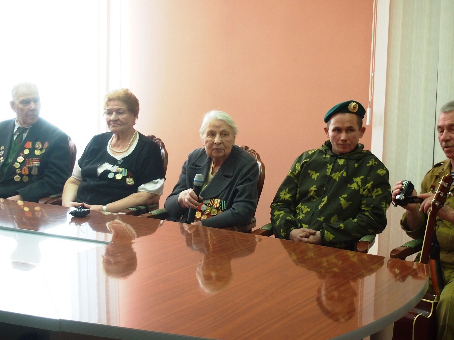 В выставочном зале городской библиотеки для студентов Нефтеюганского индустриального колледжа прошла встреча трех поколений «Связь времен», на которой присутствовали труженики тыла и ветераны Великой Отечественной войны, а также участники локальных войн.