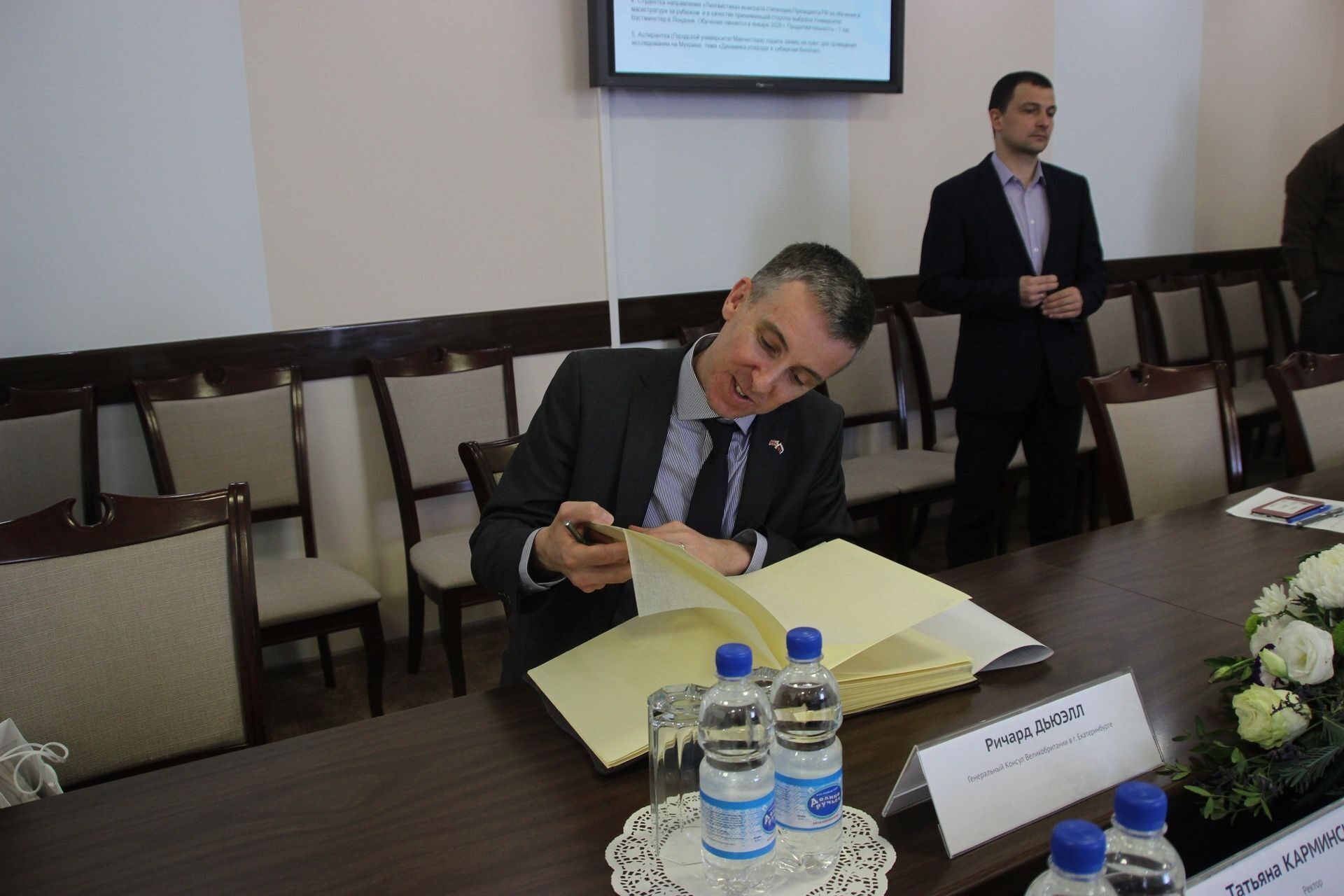 Ричард Дьюэлл встретился с руководством университета и провел презентацию стипендиальной программы Chevening для студентов.