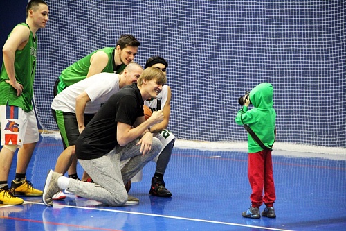 Разминка закончилась и началась игра: 5 на 5, зеленые против белых. Только на матч было отведено всего пять минут. Андрей заявил, что всегда играет в нападении, а в этой игре «я за ту команду, у которой сейчас мяч». Зеленые вели в счете, а для соперников их кольцо было как заколдованное – несколько раз при бросках белых мяч прокатывался по ободу и не попадал в корзину. К радости болельщиков счет все же «размочили». А апогеем встречи стал мяч, заброшенный «мастером» в корзину зеленых на последней секунде матча.