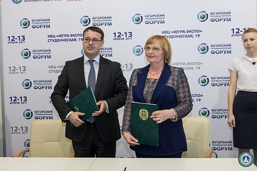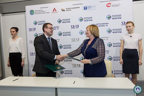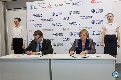 Подписание соглашения прошло в рамках Югорского промышленного форума. Со стороны Югорского государственного университета договор подписала ректор вуза Татьяна Карминская, со стороны Департамента промышленности Югры – исполняющий обязанности директора департамента Василий Дудниченко.