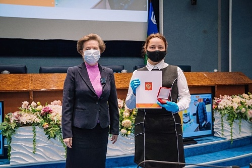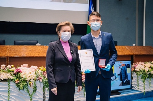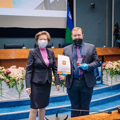 Награды, учрежденные распоряжением президента РФ, добровольцам вручила губернатор округа Наталья Комарова.