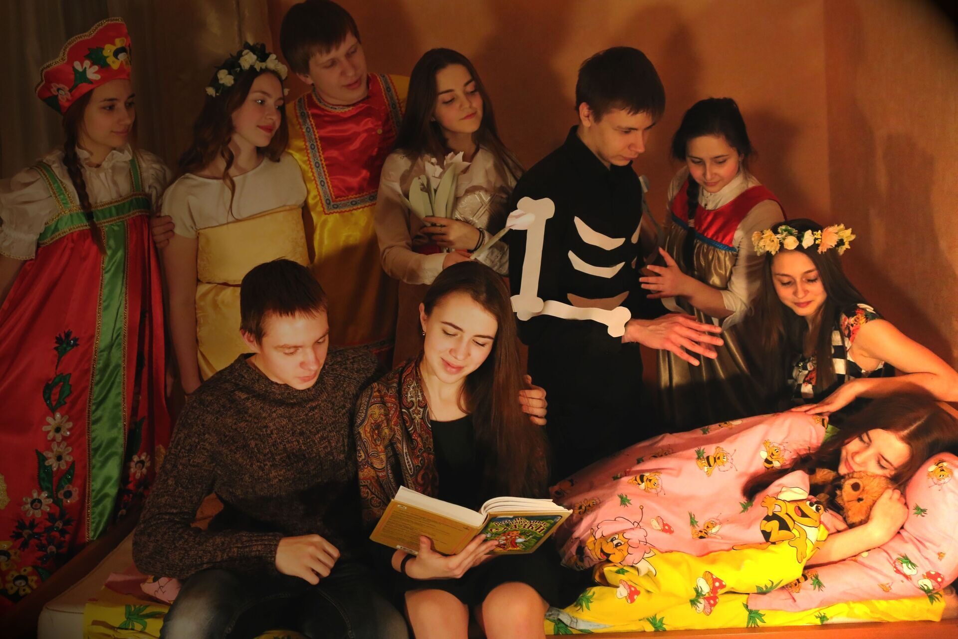 – Идея нашего номера связана с книгам, так как в этот год объявлен Годом литературы. Мы – персонажи книг, а главный герой, – его исполняет Петр Фатеев, – прочитав наши истории, оживляет нас. Но ему наши истории совершенно не нравятся, и тогда он решает переписать оригинальные рассказы, – комментируют студенты.