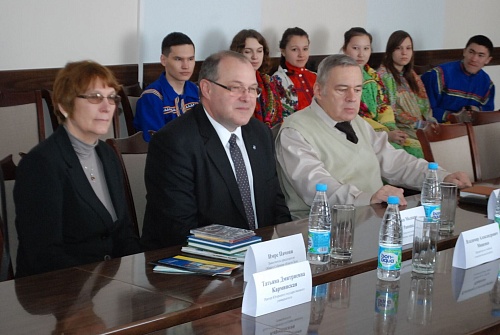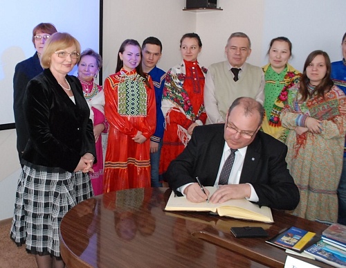 Ректор вуза Татьяна Карминская рассказала гостю о сохранении традиций и приумножении культурного наследия финно-угорских народов Севера в нашем университете.