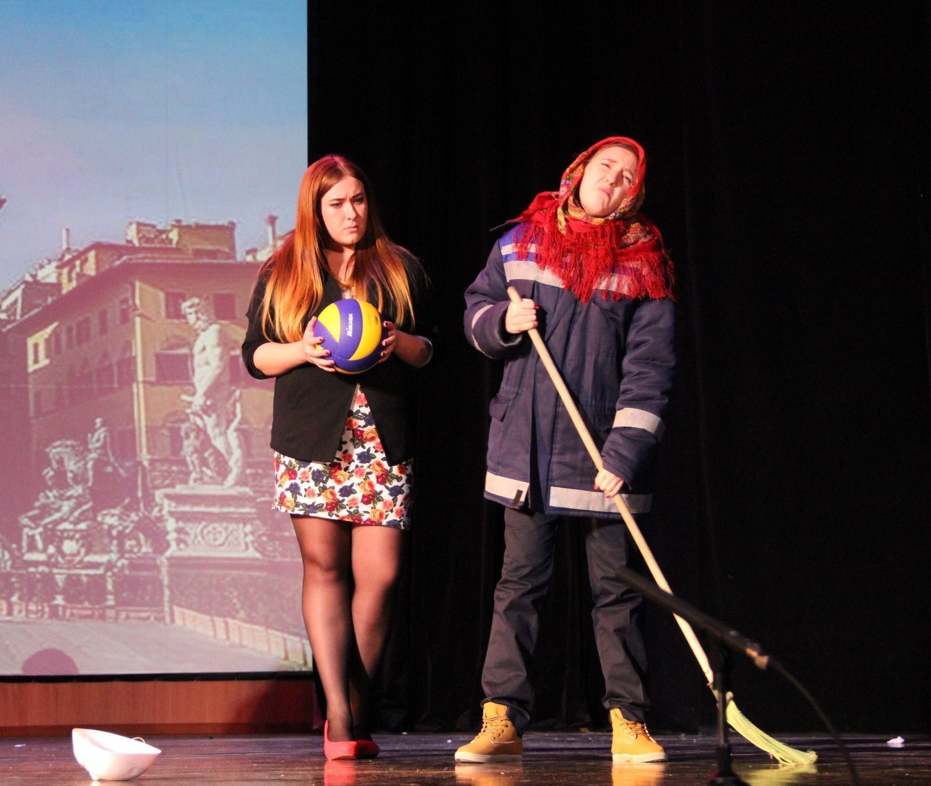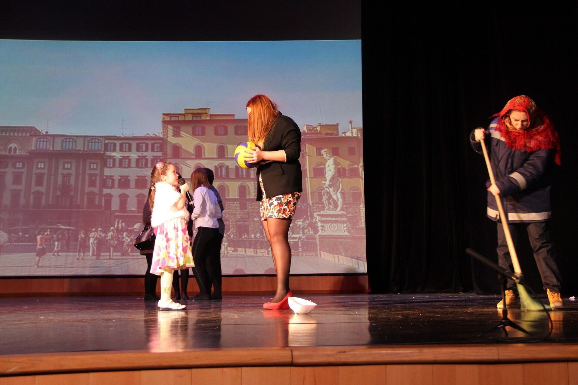 Первый номер программы это массовое действие на сцене. Шумная улица, много людей, занимающихся своим делами. Вот девушка в деловом костюме разговаривает по мобильному телефону решая свои важные дела. Стайка подружек делают селфи, и только маленькая девочка в исполнении Рианы Ковалевой среди всей этой занятой толпы пытается найти хоть кого-то с кем можно было бы поиграть в мяч. Встречая главную героиню, она просит чтобы та с ней поиграла, но увы, она отказывается, и девочка убегает оставляя девушку со своими размышлениями. Героиня понимает, что она поступила плохо и считает, что девочку надо найти.