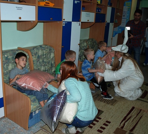 Организаторы в ходе переговоров с представителями «Лучика» выяснили, что в отделение дневного пребывания реабилитационного центра нужны подушки, так как в расписании дня центра есть сон час.