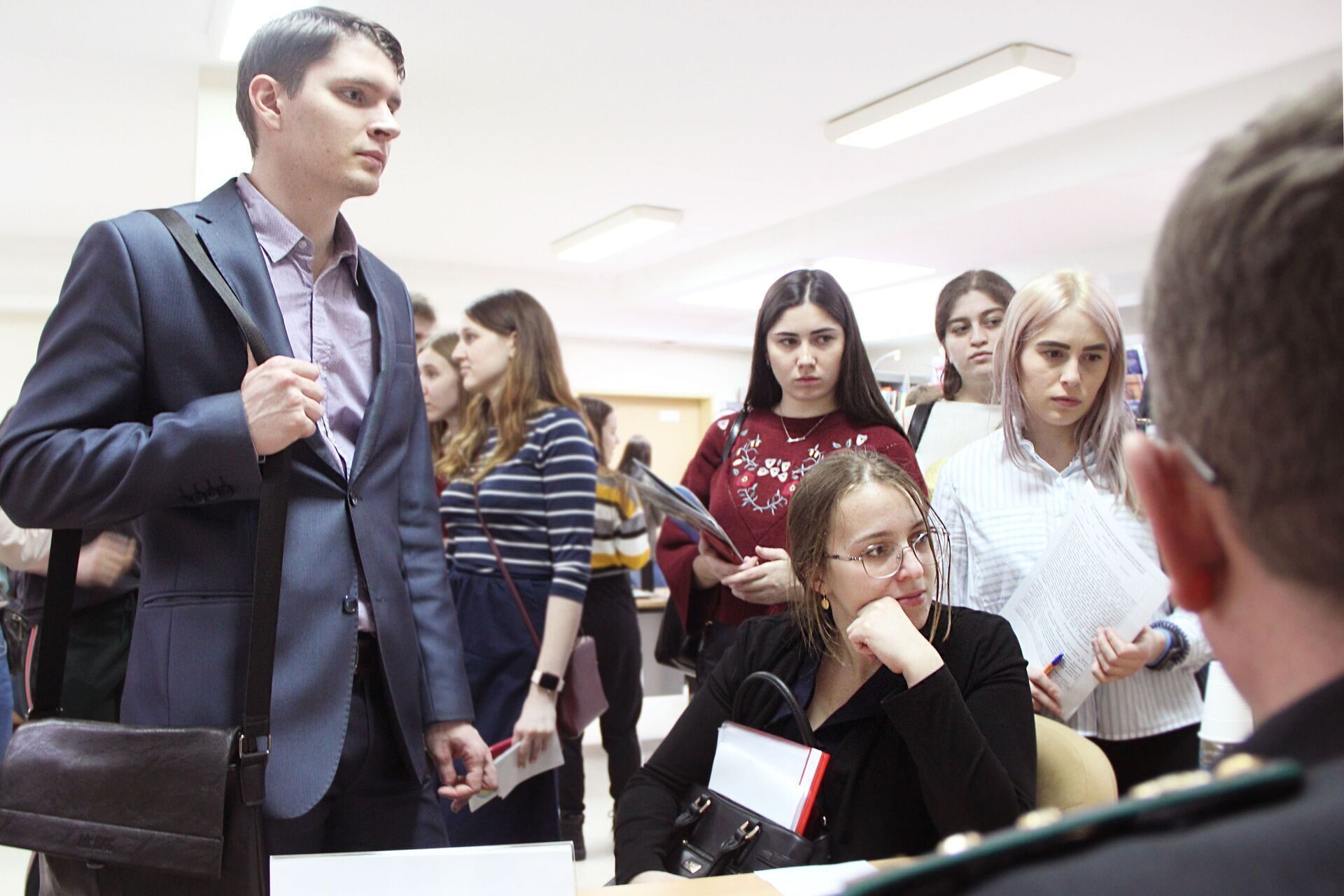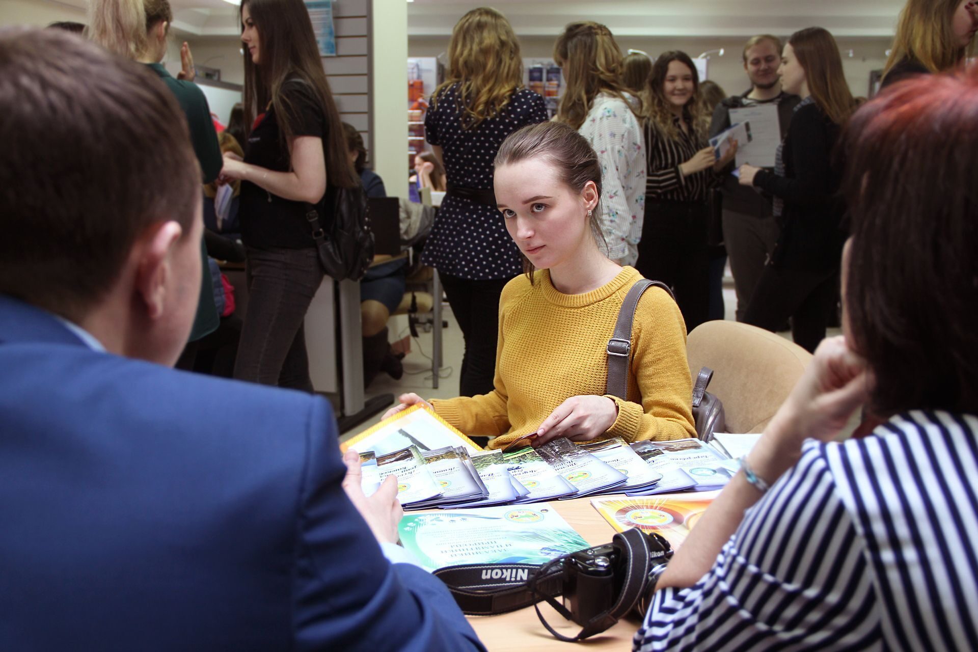 150 студентов посетили ярмарку вакансий, многие заполнили анкеты, некоторые из ребят прошли собеседование и получили приглашение на работу.