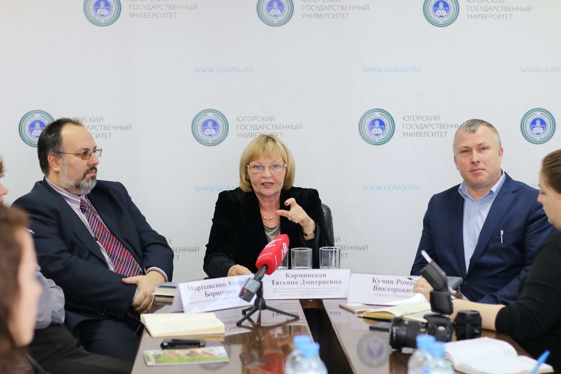 Открылся первый этап общественного обсуждения Программы стратегического развития университета. 20 октября состоялась пресс-конференция ректора Югорского госуниверситета Татьяны Карминской, на которой были рассмотрены ключевые моменты Программы развития университета на 2017–2021 гг. На вопросы журналистов также отвечали проректор по учебной работе Роман Кучин и проректор по научной работе и международной деятельности Андрей Мартыненко.
