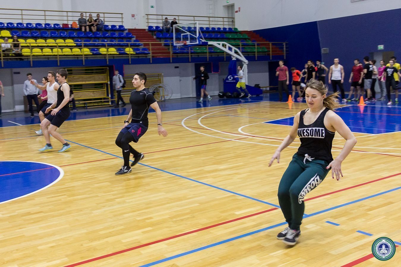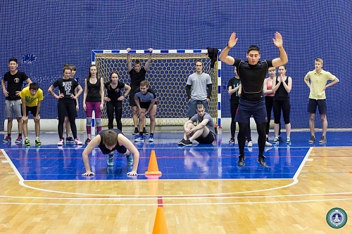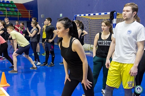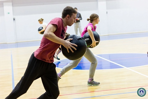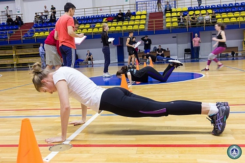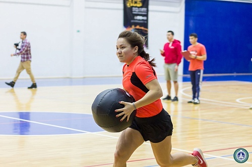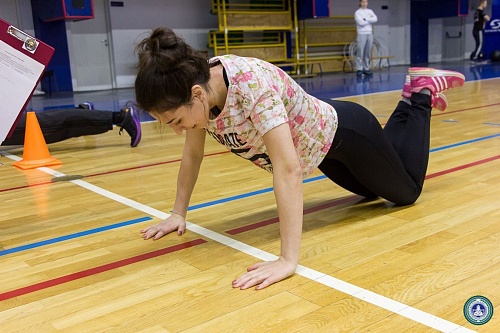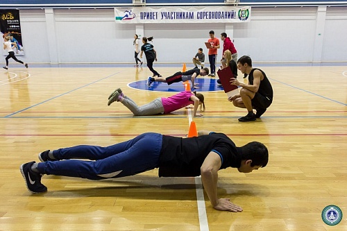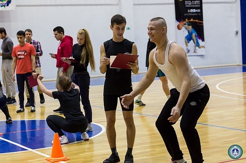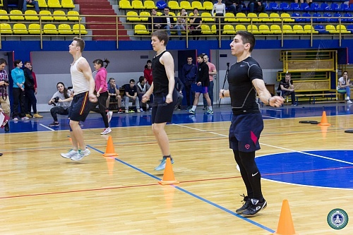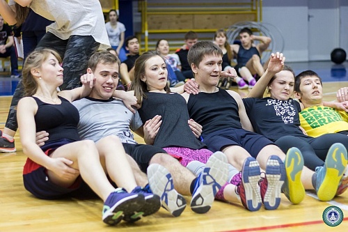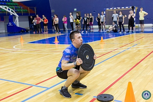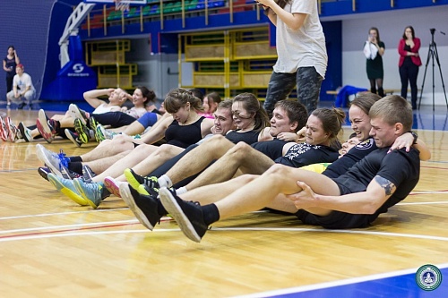 В Спорткомплексе состоялись веселые старты с элементами кроссфит между институтами, приуроченные ко Дню студента. В состав команд вошли четыре юноши и четыре девушки от каждого института.
