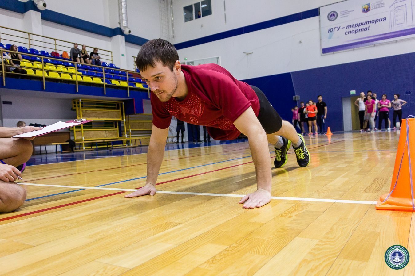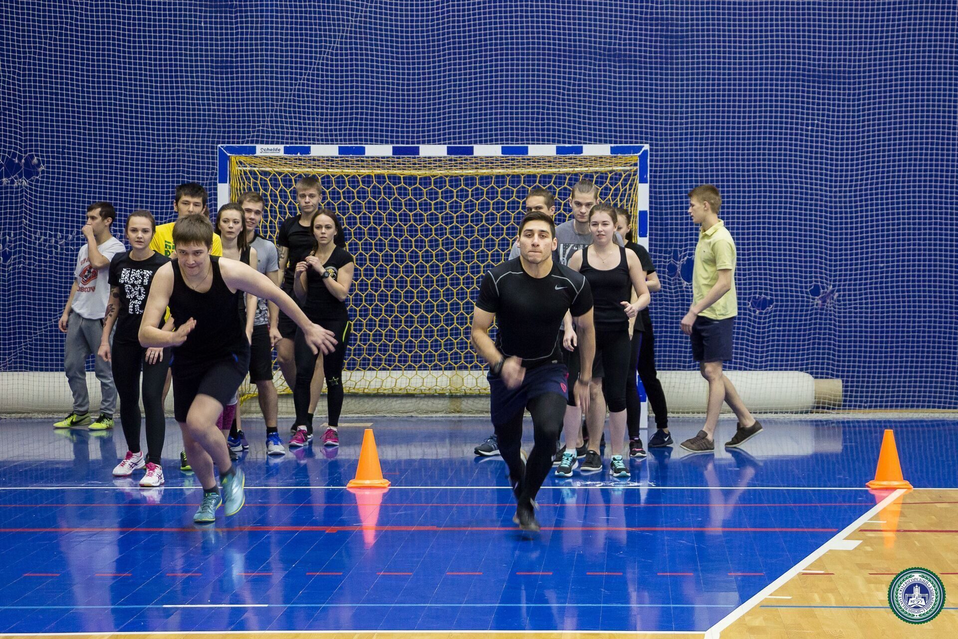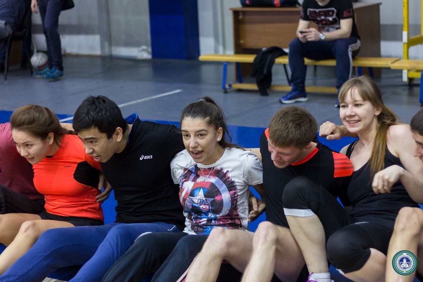 В Спорткомплексе состоялись веселые старты с элементами кроссфит между институтами, приуроченные ко Дню студента. В состав команд вошли четыре юноши и четыре девушки от каждого института.