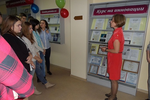 Заведующая информационно-библиографическим отделом библиотеки Елена Ознобленкова раскрыла содержание разделов выставки: «Стремление. Возможности. Успех»,«Scientiapotentiaest» (Знание – сила), «Международное сотрудничество», «Курс на инновации».