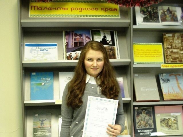 Благодарностью за участие в викторине отмечена Неклюдова Ксения Владимировна, гр. 6ТОР30, Лянторский нефтяной техникум.