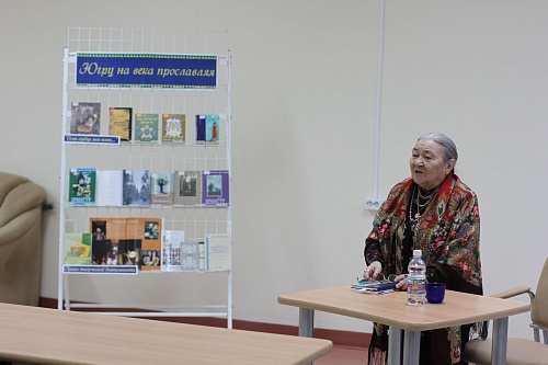 В преддверии 85-летия округа наша гостья рассказала о своем народе и о своих корнях, о том, как важно любить свою Родину: малую и большую, читала свои стихи и пела песни. Все ее произведения – это летопись края, в которой с большой любовью отражается жизнь людей разных профессий, национальностей.
